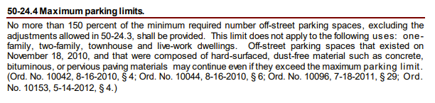 - 50-24 PARKING AND LOADING. 50-24.1Applicability. 50-24.3Adjustment to required off-street parking. 50-24.4 Maximum parking limits. Pages 49-54