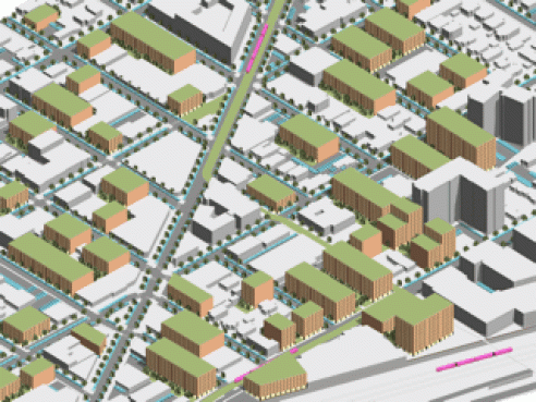 - Developing parking lots and vacant land into housing allows for a 234% increase in population within case study boundaries
