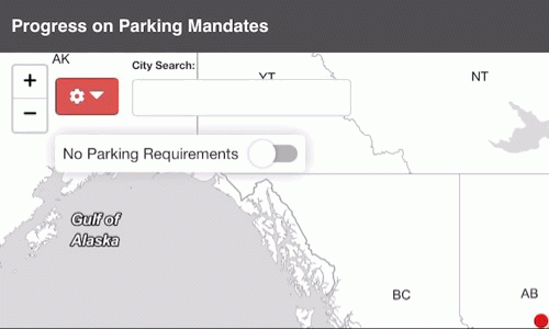 The biggest new feature is a switch under the search bar that will toggle only the cities which have (mostly) removed all their parking requirements. Some of the cities showed will still have some parking requirements on the books, but have been determined by the Parking Reform Network editorial team to have effectively eliminated mandates citywide for most/all uses.